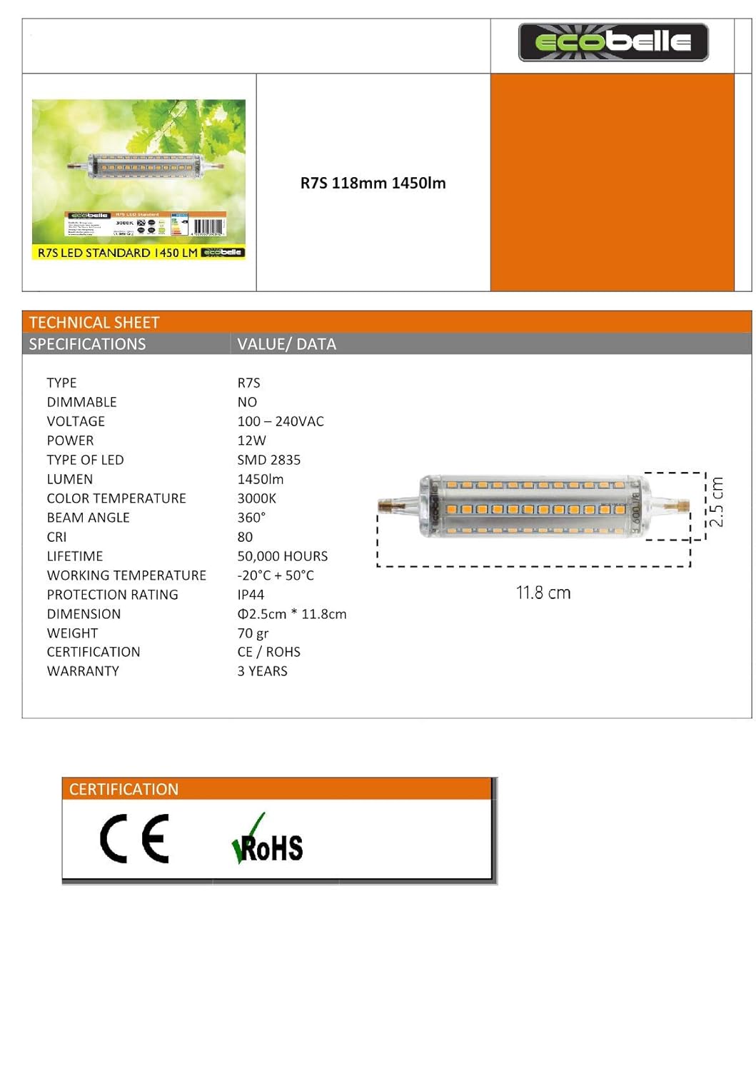 - Ecobelle 1 X 12w R7s Led Leuchtmittel Lampe 1450 Lumen Hohe Lumen Lampe Warm Weiss 3000k 118 Mm X 25 Mm 360 Amazon De Beleuchtung Putzler Lampen,